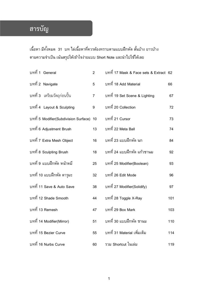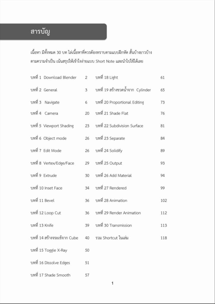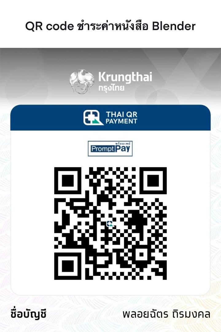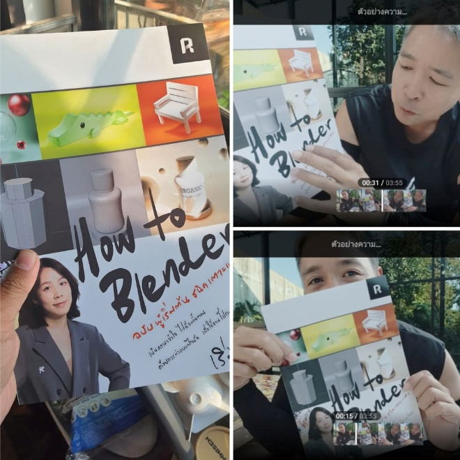 ครั้งหนึ่งเราก็เคยงงกับ Blender... หนังสือเล่มนี้เลยเกิดขึ้น เพื่อให้ “การเริ่มต้น” ของคุณง่ายกว่าที่เราเคยเจอ. หนังสือนี้เขียนโดย ผู้ช่วยของผม ครูพลอย Ploychat Thiramongkol ตลอดเวลาที่เราไปเทรนนิ่งด้วยกัน เก็บเกี่ยว requirement จากหน้างานจริง มามากมาย เอามาแปลงให้ เข้าใจง่าย ได้ผลลัพธ์ เราเอา tools มาถอดให้ง่าย ในเวอร์ชั่นของหนังสือ อ่านแล้วเข้าใจ  เพราะทุกคนมีสิทธิ์สนุกกับ 3D ได้ตั้งแต่วันนี้ หนังสือ 119 หน้า พิมพ์ ขาวดำ เน้นให้เข้าถึงง่ายที่สุด.