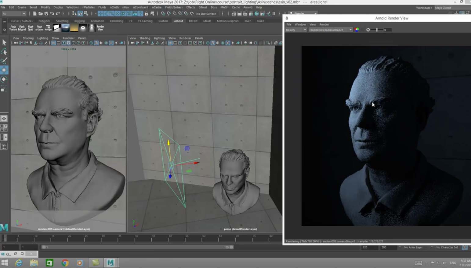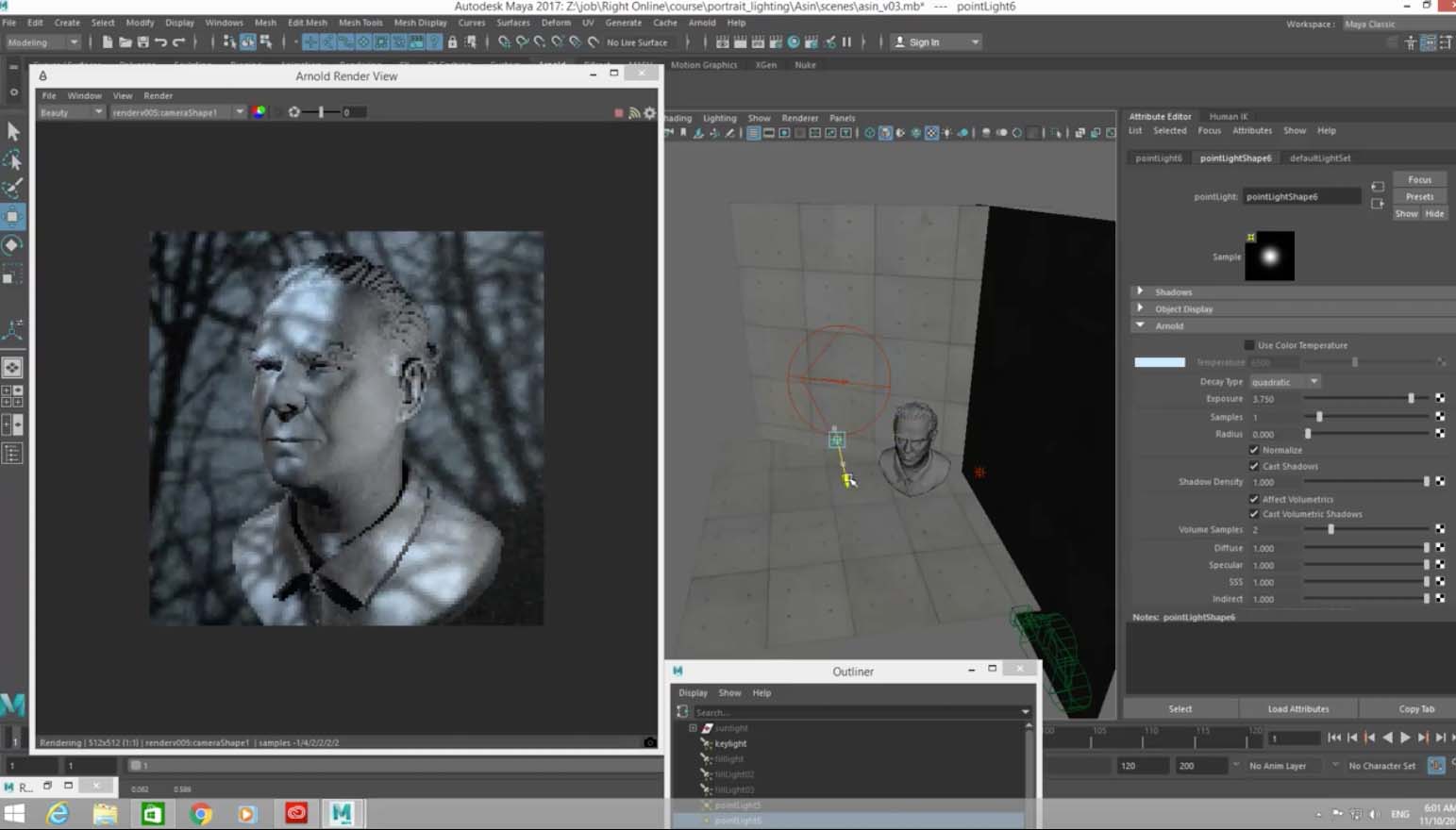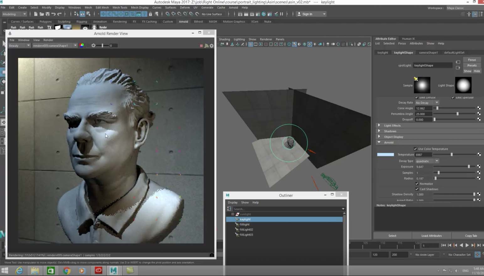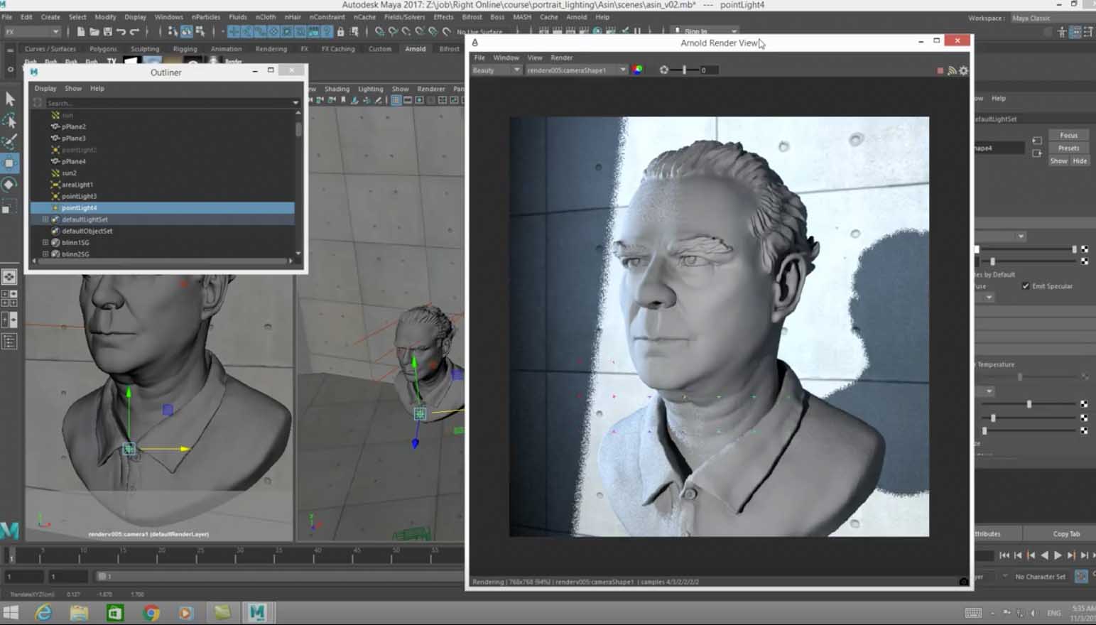 คือ Basic Lighting และ Portrait Lighting โดย Arnold render Maya จาก RightCG