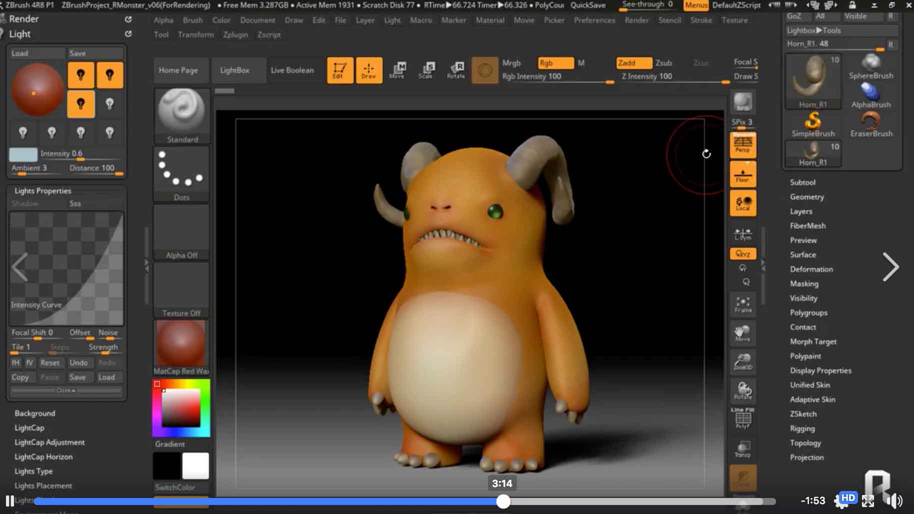 Zbrush Basic ในรูปแบบ VDO จาก RightCG เปลี่ยนโปรแกรมอันแสนสับสน กลายเป็นคนที่รู้ใจ